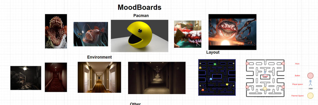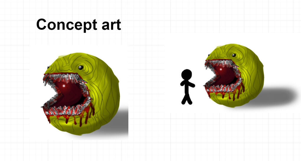 Developed detailed and horrifying concept art for Pac-Man and the game environment using Photoshop.I came up with this horror twist on Pac-Man where the player navigates a dark, maze-like environment from a first-person perspective. The goal of the game is to press buttons at positions in the map that mimic the original game’s power pellets. The player acts as Pac-Man’s final pellet and must avoid being eaten by a grotesque re-imagining of the character.Pac-Man is attracted to noise and will chase the player upon buttons being activated. This forces the player to be confronted by him multiple times encouraging them to keep moving through the level. Once the player activates all buttons, the exit is unlocked but Pac-Man is put into a frenzy and knows exactly where they are.Pac-Man has a light in his mouth inspired by that of an angler fish. It was designed to be the same shape as a button to confuse the player into approaching him. He is stationed at the end of corridors to incite this confusion.
