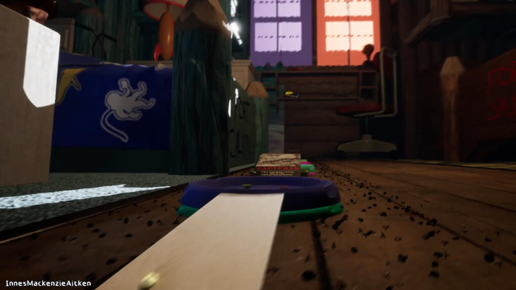 Codename: Kid’s Room is a game prototype I made during my second year of college. It is a challenge game where the player must complete an obstacle course . They can also keep track of their scores, compete with others, and earn rewards.I made this game for a college assignment in which where the aim was to create a rapid prototype for a hypothetical client. This ‘client’ wanted an obstacle course game. It challenged me to think about what companies and audiences look for in my work, and further develop their ideas.The game is set in a childhood bedroom. As the target audience is 16 year olds and I created it in 2021, it is set in the late 2000s-early 2010s. I kept this in mind when designing the look of the game. The colours are vibrant, menu buttons resemble Lego bricks, and the player character looks like a clay model.Casual game mode is easier and more colourful. The colours are randomly generated (though always vibrant) and so are the obstacles. This mode is ideal for players looking for a fun and easy experience.Competitive game mode is harder and gloomier. It is the game’s ‘dark side’ designed for players who wish to compete with others online. The competition functions by comparing data from multiple accounts and ranking them on a leaderboard that all players can see. To ensure this is fair and accurate, competitive mode does not have randomly-generated obstacles.In both game modes, I keep the player on track with the objects I have added outside the course that kill the player. Sometimes they’re pins, sometimes they’re peanuts, but they’re always deadly. To accompany this, I made a death animation where the player crumbles/disintegrates. I created this by experimenting with particle systems, eventually creating one that would emit from the player character’s final pose, blending in enough to appear as though they are disintegrating.At the end of a game, the player earns a number of coins that is determined by subtracting their time in minutes from 200. These coins can be used to purchase accessories for their character in the menu screen. The time is also stored, to compare with their other times (high scores) or other players’ times (leaderboard).Aim of the game: