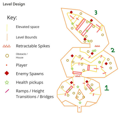 To complement my sprint design notes, I would organise regular design meetings with varying members of each discipline and the producer to establish a consistent understanding of our game that affects these disciplines. This would also be used as a decision-making time for our pivotal decisions in the project, such as adjusting the game according to client/mentor feedback or major design changes with our client, mentor and team’s best interests in mind.Level Design: